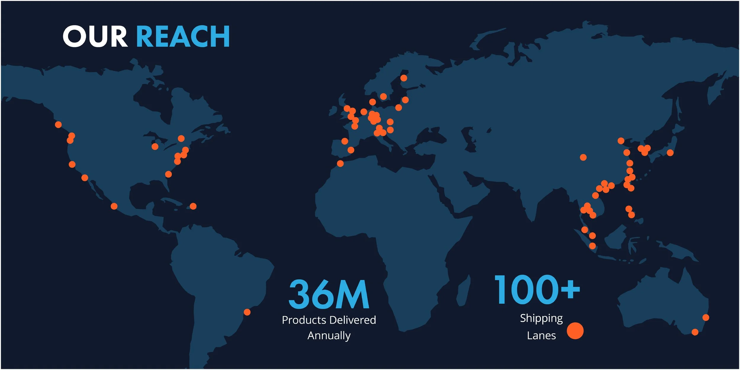 Over the years, our global reach has expanded to include eight VentureSource locations and over 100 active shipping lanes supporting 26 partner manufacturing sites worldwide. We move more than 36 million parts each year.